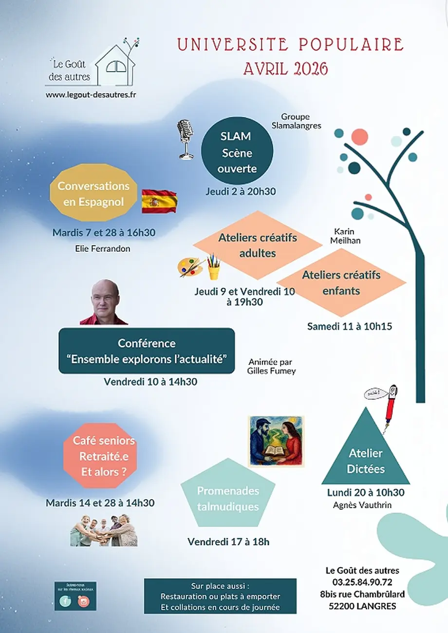 Conversations en espagnolLe 28/04/2026LangresUniversité populaire. avec Elie Ferrandon