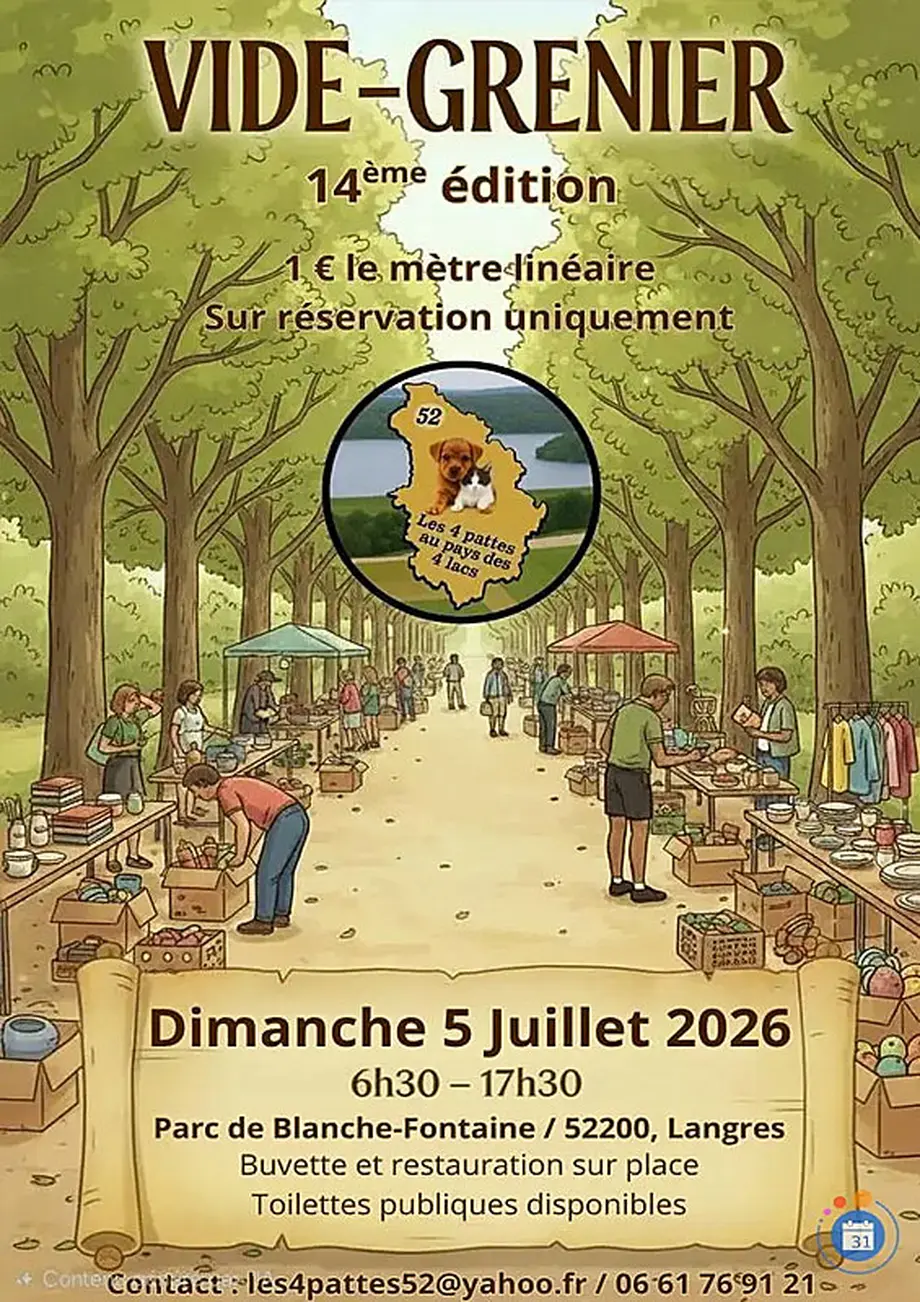 Vide-grenier de GrandchampLe 14/06/2026GrandchampVide-greniers avec buvette et restauration sur place.