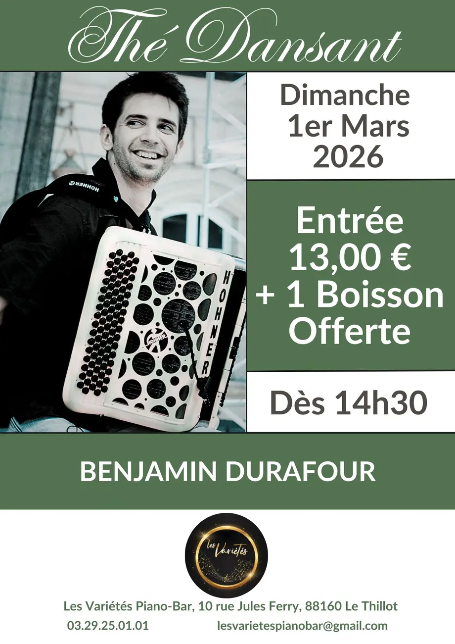 Rendez-vous pour votre Thé Dansant hebdomadaire en compagnie de Benjamin Durafour pour faire chauffer le parquet pour une après-midi à tourner, danser et s'amuser !