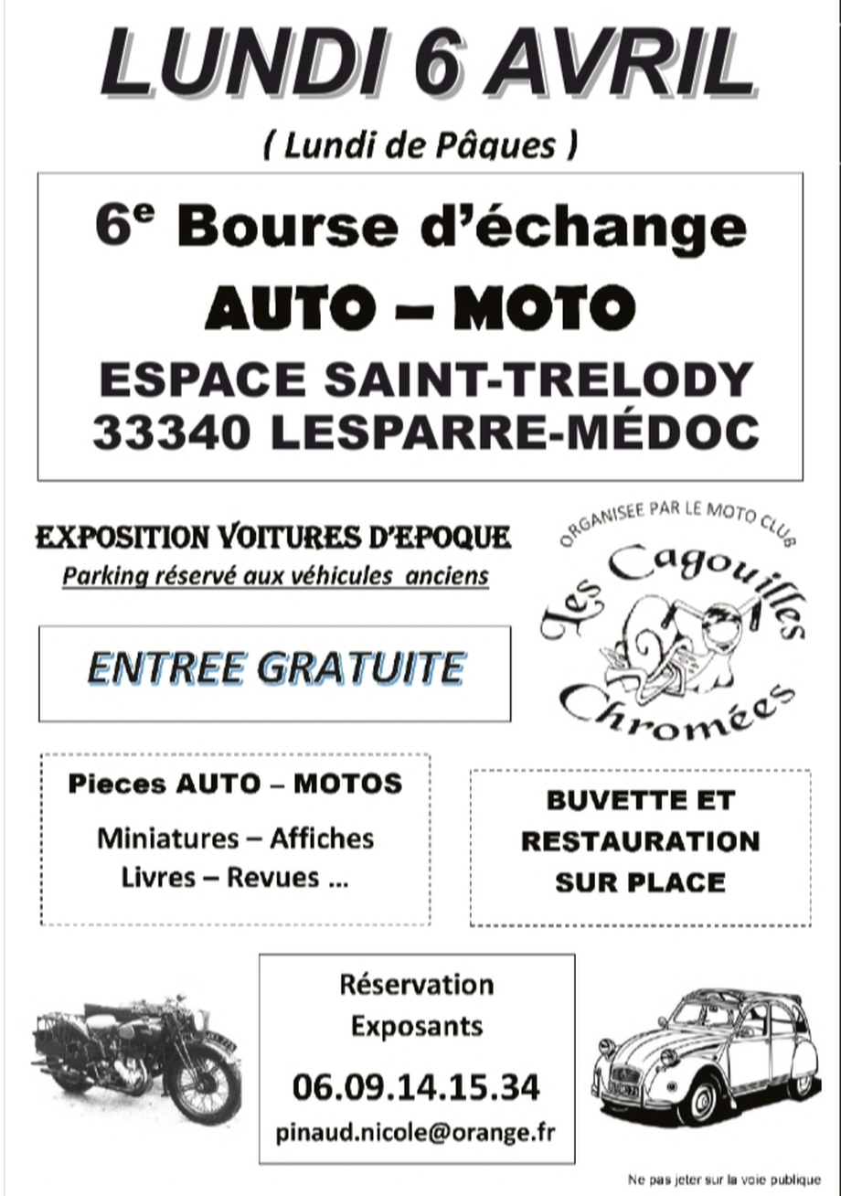 Bourse d’échange auto-moto organisée par le Moto Club « Les Cagouilles Chromées ».