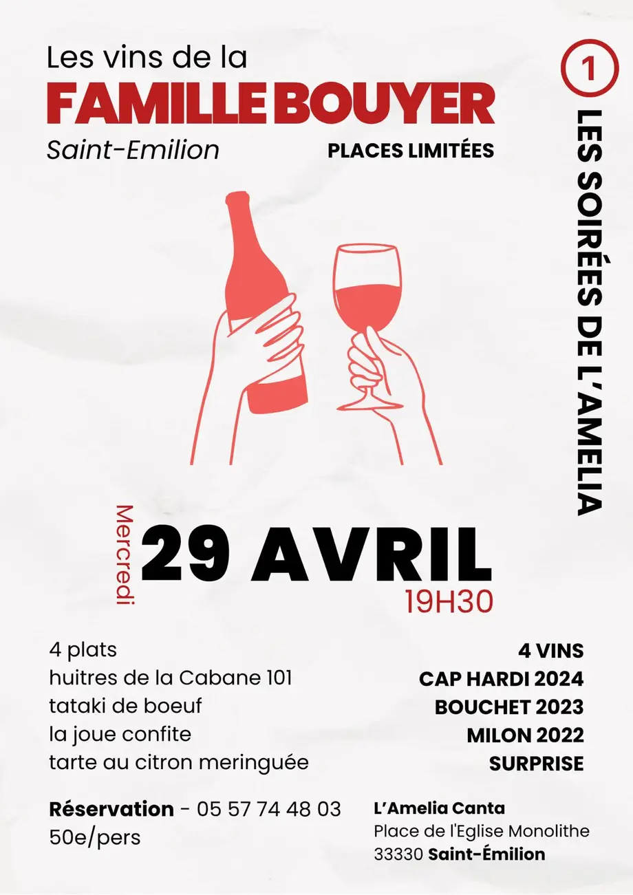 Le temps d’une soirée, laissez-vous porter au cœur de Saint-Émilion avec les vins de la Famille Bouyer.