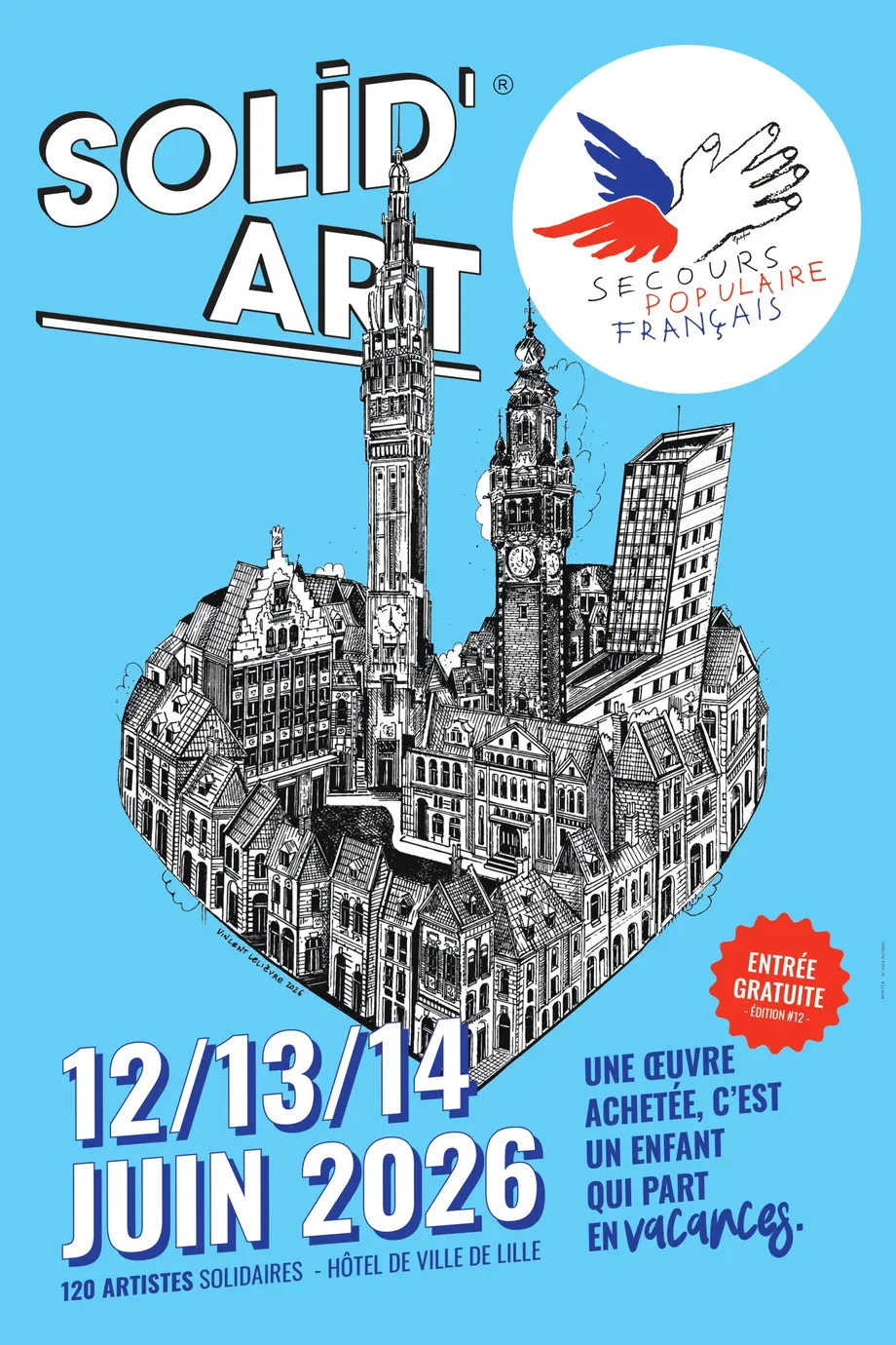 La 12ᵉ édition de Solid'Art Lille, le salon d'art contemporain du Secours populaire, se tient du 12 au 14 juin 2026 au sein de l'Hôtel de Ville de Lille, sur 2 500 m² d'exposition gratuite.