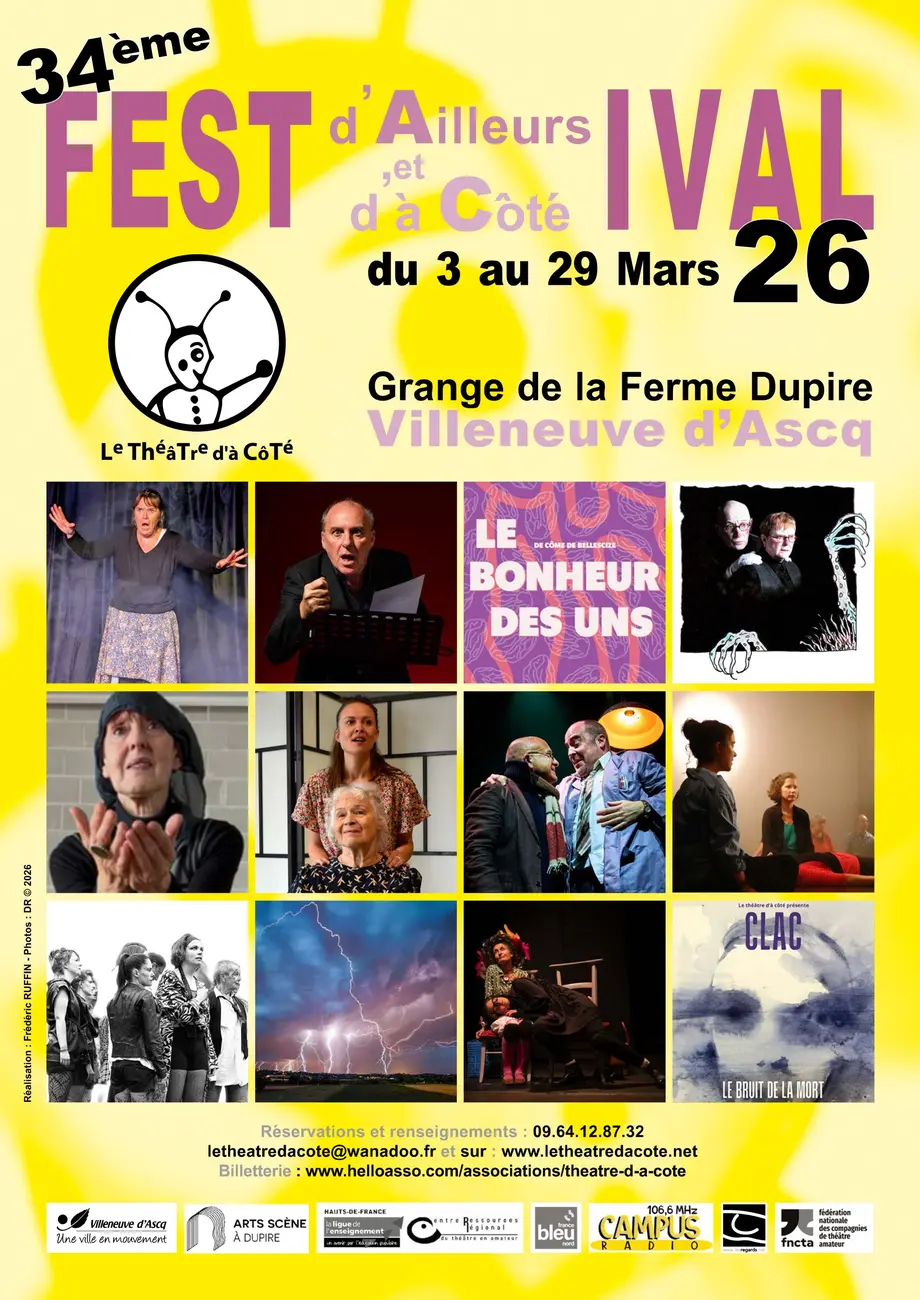 Le Théâtre d'à côté jouera et accueillera dans ce beau lieu, si convivial, qu'est la Grange de la Ferme Dupire huit autres compagnies pour des créations (6 lors du Festival !), des spectacles en tournée, amateurs et professionnels.