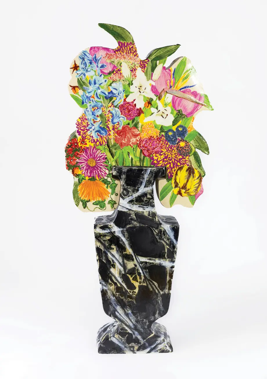 En réponse, son travail maîtrisé de la porcelaine conjugue figuratif, réalisme et illusionnisme autour d’un sujet éminemment classique : le motif floral, le vase et son bouquet.