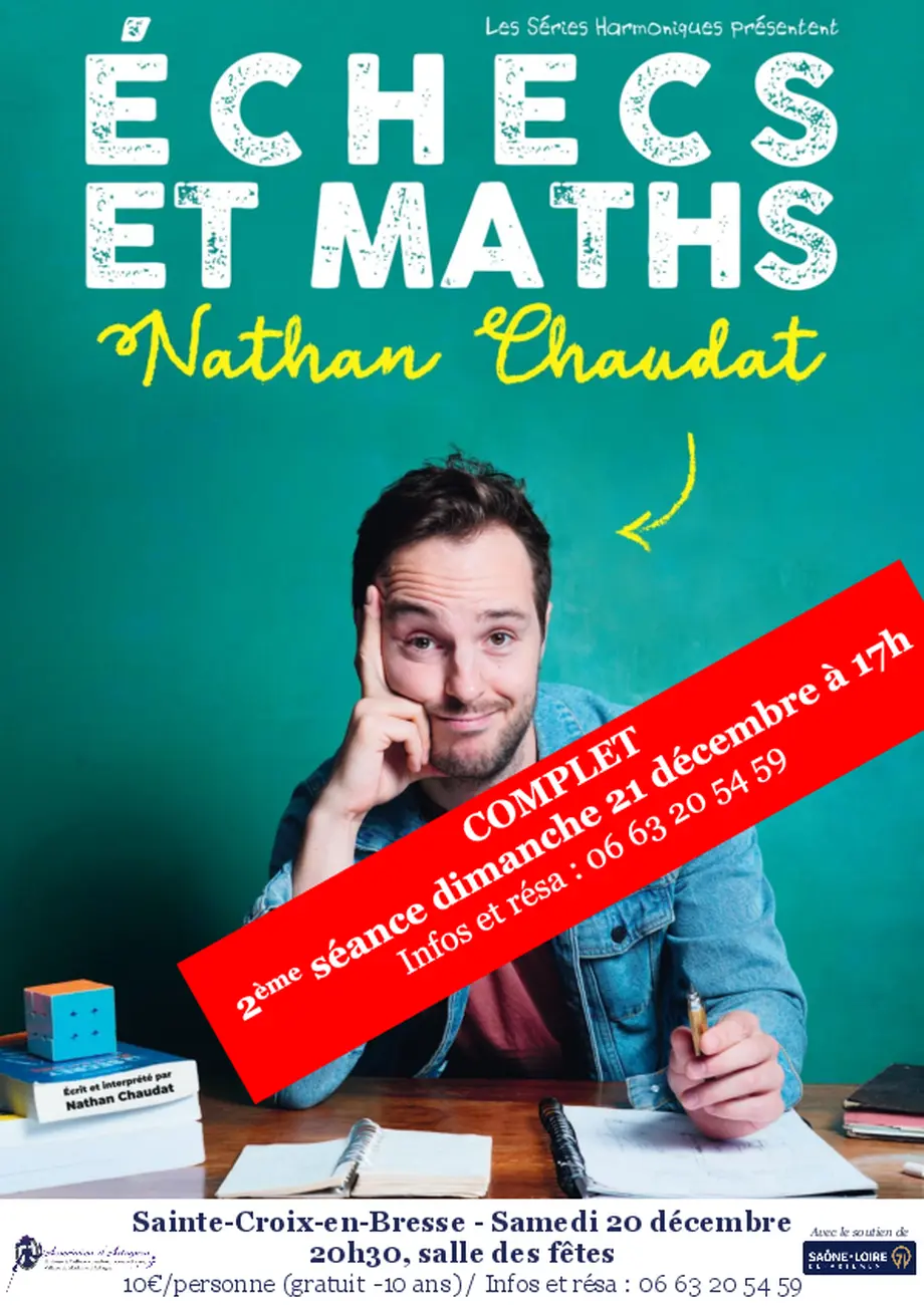 Les 150 places de la séance du samedi ayant été prises d’assaut, nous vous proposons un deuxième rendez-vous avec Nathan Chaudat et son one-man-show « Échecs et maths ».