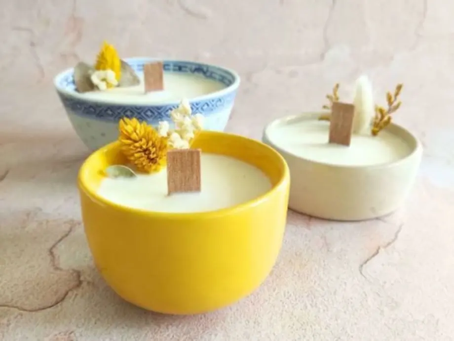 - Vous repartirez de l’atelier avec votre bougie fleurie à la cire végétale.