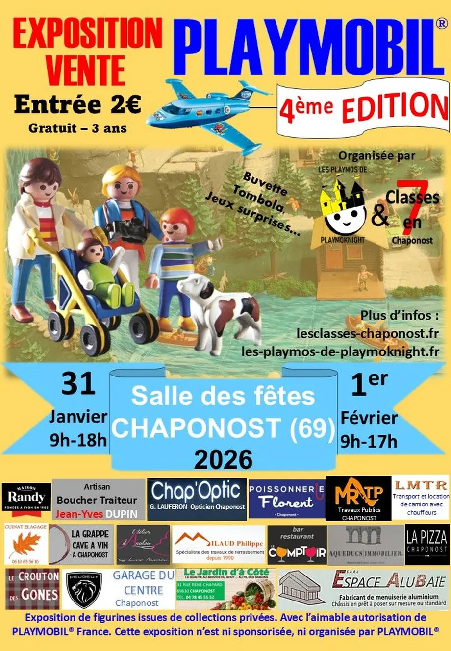 La 4ème édition de la grande EXPOSITION VENTE de PLAYMOBIL® des Classes en 7 Chaponost et de Les Playmos de PlaymoKnight, le Samedi 31 janvier 2026 et dimanche 1 février 2026.