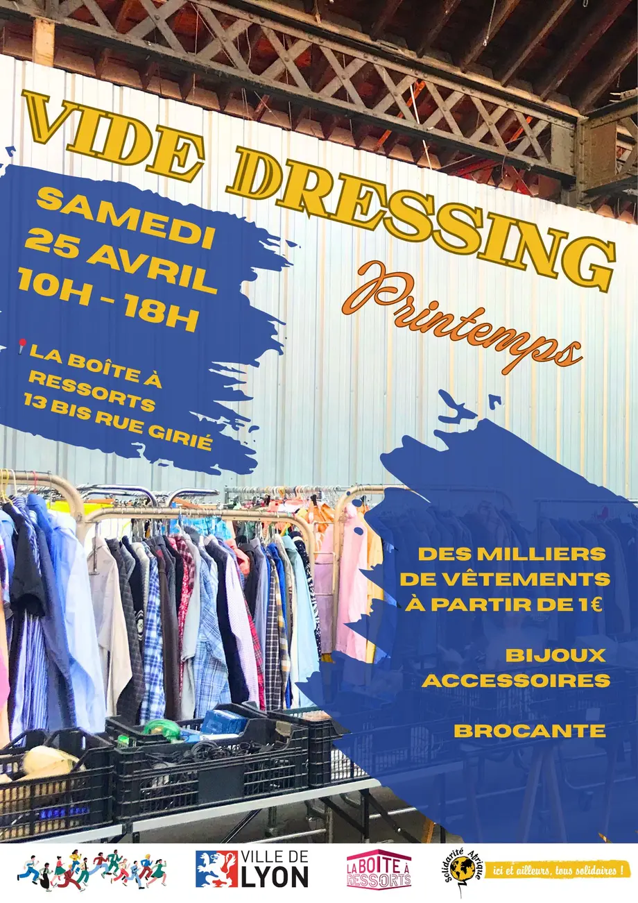 Solidarité Afrique organise son Vide dressing printemps le 25 Avril à la boite à ressorts, 13 bis rue Girie, 69003. Venez découvrir notre journée de sensibilisation à la consommation durable avec un vide dressing de plus de 1000 pièces de seconde main.