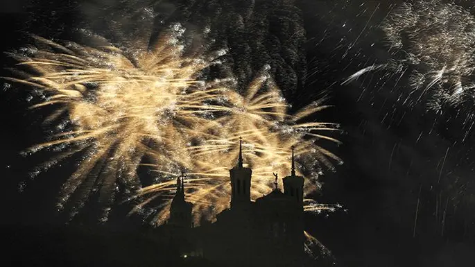 Des milliers de spectateurs s'installent sur les berges du Rhône et les quais de Saône pour admirer un magnifique feu d'artifice à Lyon. Celui-ci est traditionnellement tiré le soir du 14 juillet depuis la colline de Fourvière. Le feu d'artifice met à l'honneur le magnifique bâtiment de la Basilique Notre-Dame de Fourvière : les couleurs scintilleront dans le ciel lyonnais, illuminant la ville en cette belle nuit d'été.