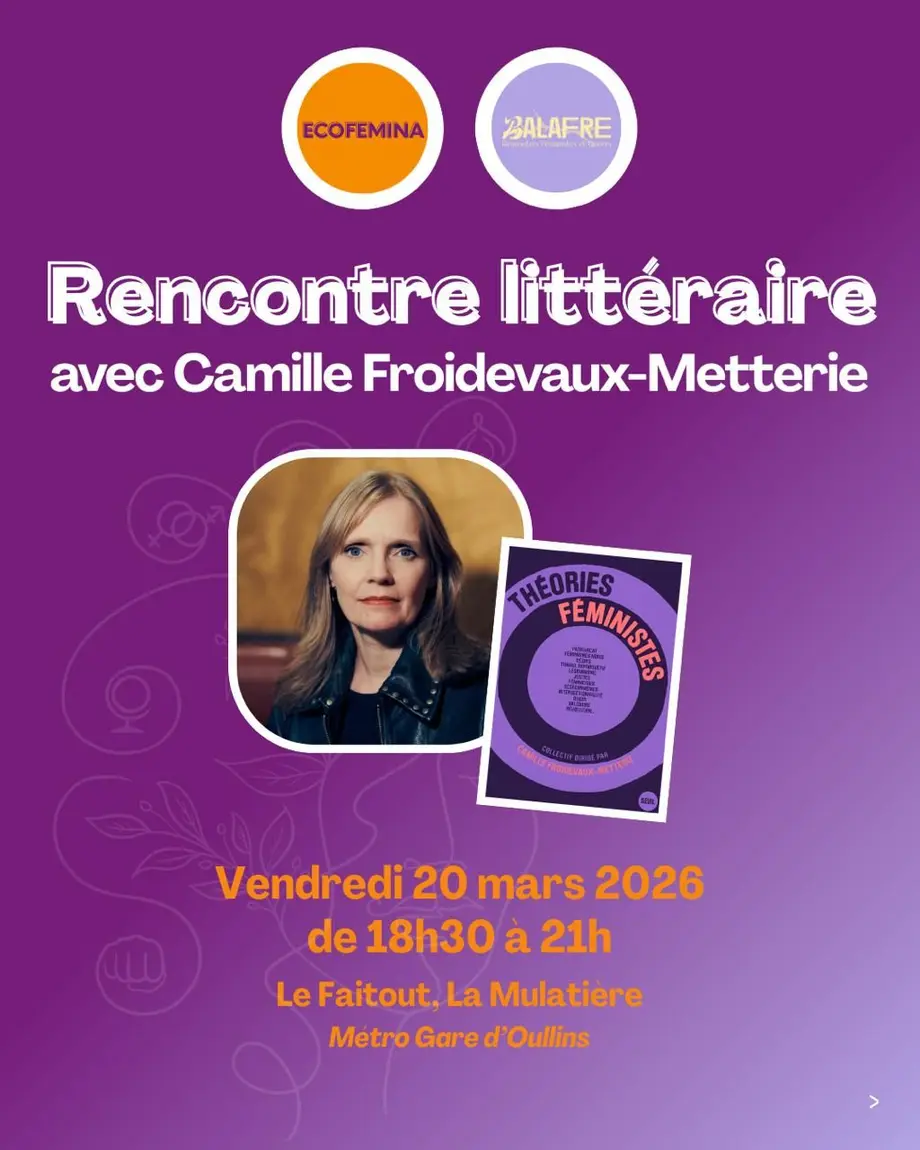 Le 20/03 à 18h30, EcoFémina et Balafre vous attendent pour découvrir le livre "Théories féministes". Des pionnières médiévales aux luttes intersectionnelles et LGBTQI+ actuelles, découvrez 130 textes qui renversent l’ordre patriarcal. Une immersion accessible dans l’histoire et l’avenir de l’émancipation, portée par Camille Froidevaux-Metterie.