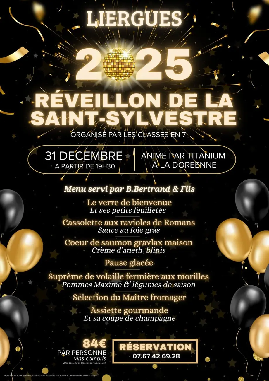 Les classes en 7 de Liergues organisent la soirée du réveillon de la Saint Sylvestre, le 31 décembre 2025 à partir de 19h30 et jusqu'au bout de la nuit.