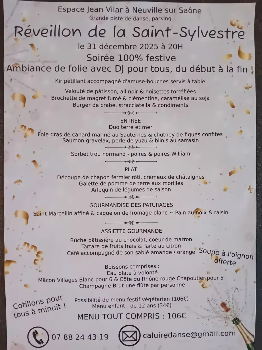 Réveillon du jour de l'an 2025 à Neuville sur Saône