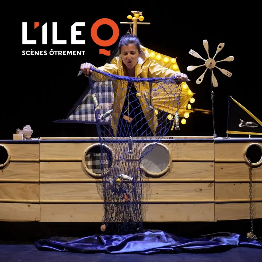 Partons vite pêcher en mer, cap sur l’île de la sardinette ! **La table devient alors bateau**, un bateau qui navigue sous l’eau ! À travers ses hublots des mystérieuses créatures marines lumineuses, crabe, requin, sous-marin, coquillages… Jusqu’à l’arrivée d’une pêche miraculeuse !