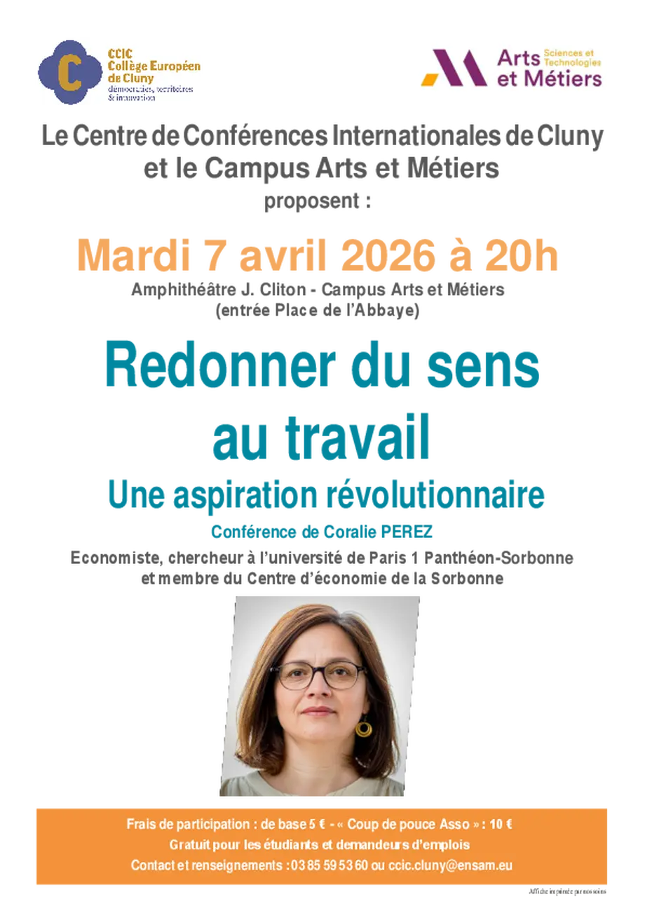 Conférence proposée par le CCIC-Collège européen de Cluny et le campus Arts et Métiers de Cluny, animée par Coralie PEREZ, économiste, ingénieure de recherche à l’université Paris 1 Panthéon-Sorbonne, membre du Centre d’économie de la Sorbonne (CES).