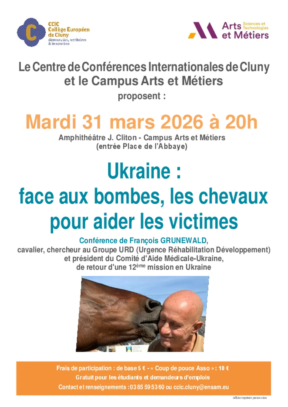 Conférence animée par François GRUNEWALD, cavalier, chercheur au Groupe URD (www.urd.org) et président du Comité d'Aide Médicale-Ukraine (www.cam-ukraine.org), de retour de sa 12e mission en Ukraine.