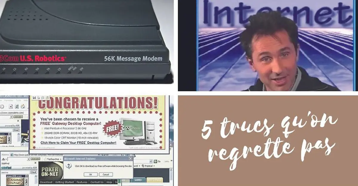 Qui se souvient encore qu’il fallait un modem 56K, pour pouvoir brancher son Pécé à internet ? Psschhhh, krouiiiiiii, bibuuu bibuuu... On monopolisait ainsi la ligne de téléphone fixe, à une époque où personne n’avait de mobile, et maman ne pouvait plus ratscher avec tata ! La facture à 500 francs d’internet par mois faisait également bien mal au derrière. Le web était hors de prix.