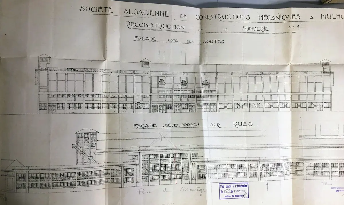 Elle fut reconstruite en 1924 par l'architecte mulhousien Paul Maroseau, ancien employé de l'architecte Paul Friese. Il réalisa un plan de bâtiment constant et linéaire, organisé sur 2 niveaux, complétés par des silos de stockage. L'ingéniosité du projet se traduit dans les dessins complexes de sa structure, encore visible aujourd'hui : une véritable dentelle de béton, apportant une luminosité constante dans le bâtiment et résistant aux vapeurs corrosives de la fonderie. Du nord au sud les étages supérieurs étaient composés de silos à coke, de cubilots et de sablières. Une usine "high-tech" pour l'époque, qui a employé des générations d'ouvriers pour fabriquer des locomotives pour le groupe SACM.