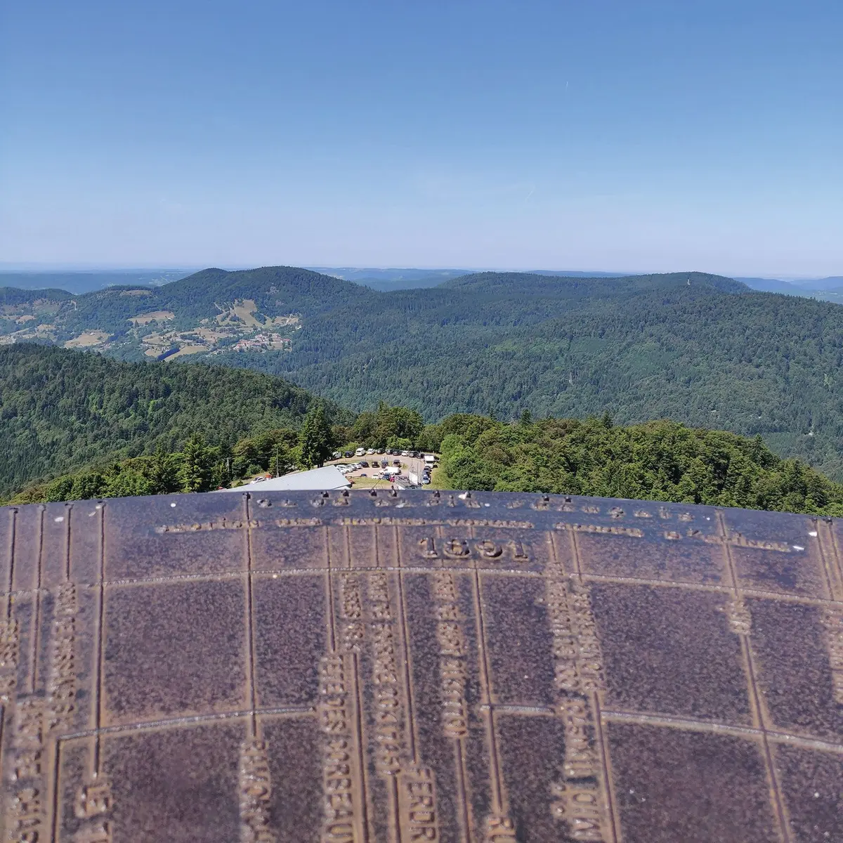 Vous pourrez apprécier depuis le sommet une vue dégagée sur la vallée de Saint-Amarin, sur les sommets du Ballon d'Alsace, du Rossberg et du Grand Ballon ! Un panorama captivant avec au premier plan des vosgiennes ruminant au soleil ainsi qu'une table d'orientation vous permettant de vous repérer. Vous passerez sans nul doute devant le lieu privilégié des amateurs de parapente pour débuter leur vol. Un beau moment dont vous pourrez profiter tout en entamant votre descente, toujours sur le rectangle bleu, en direction de l'auberge du Drumont.