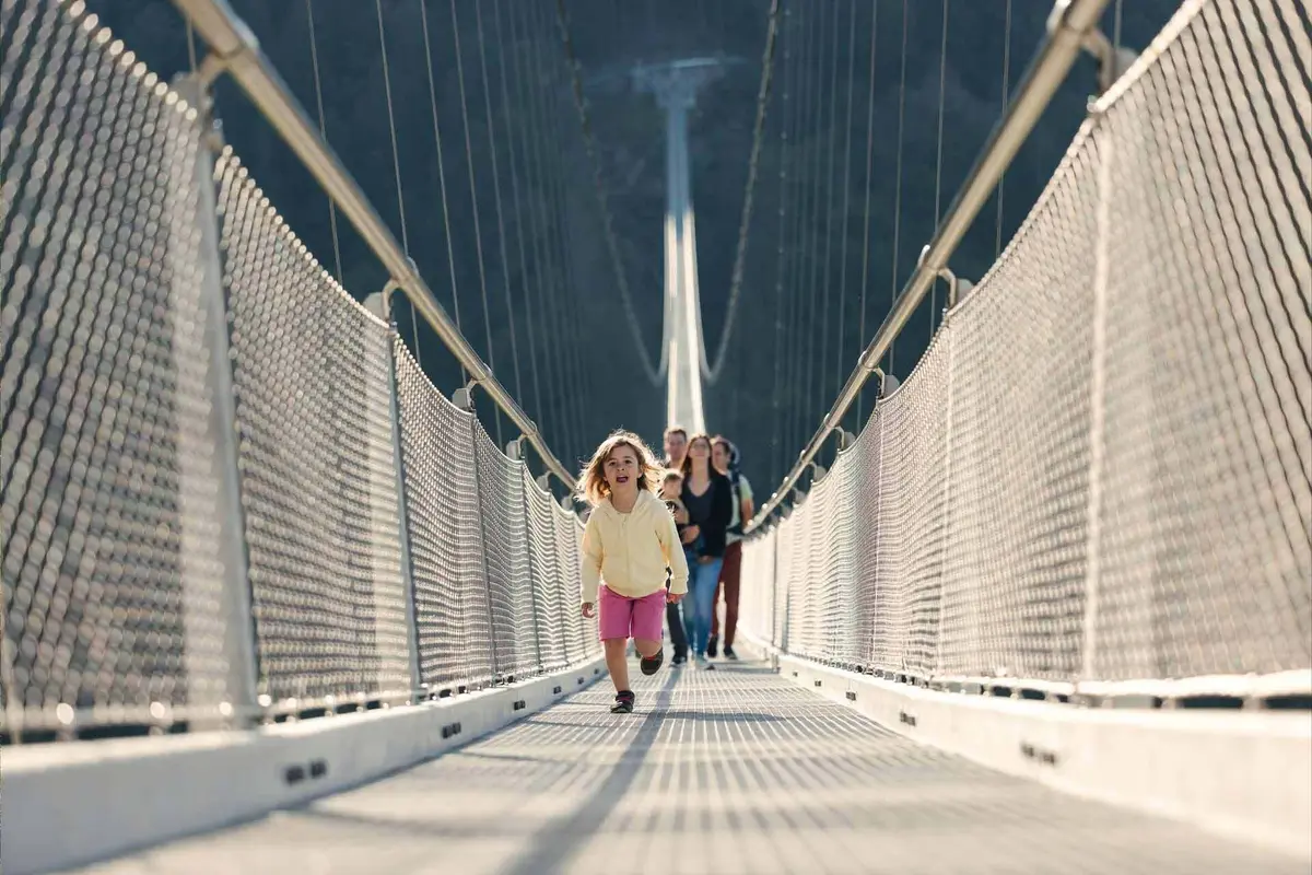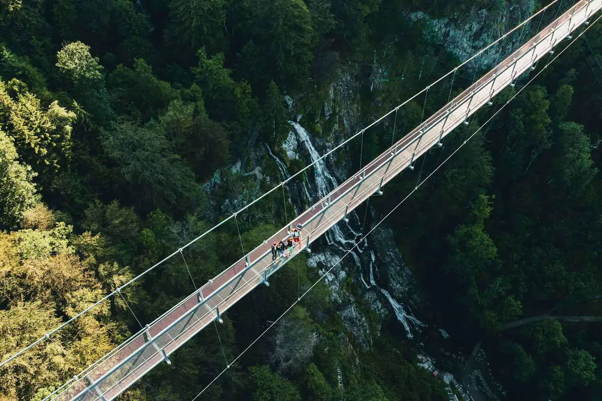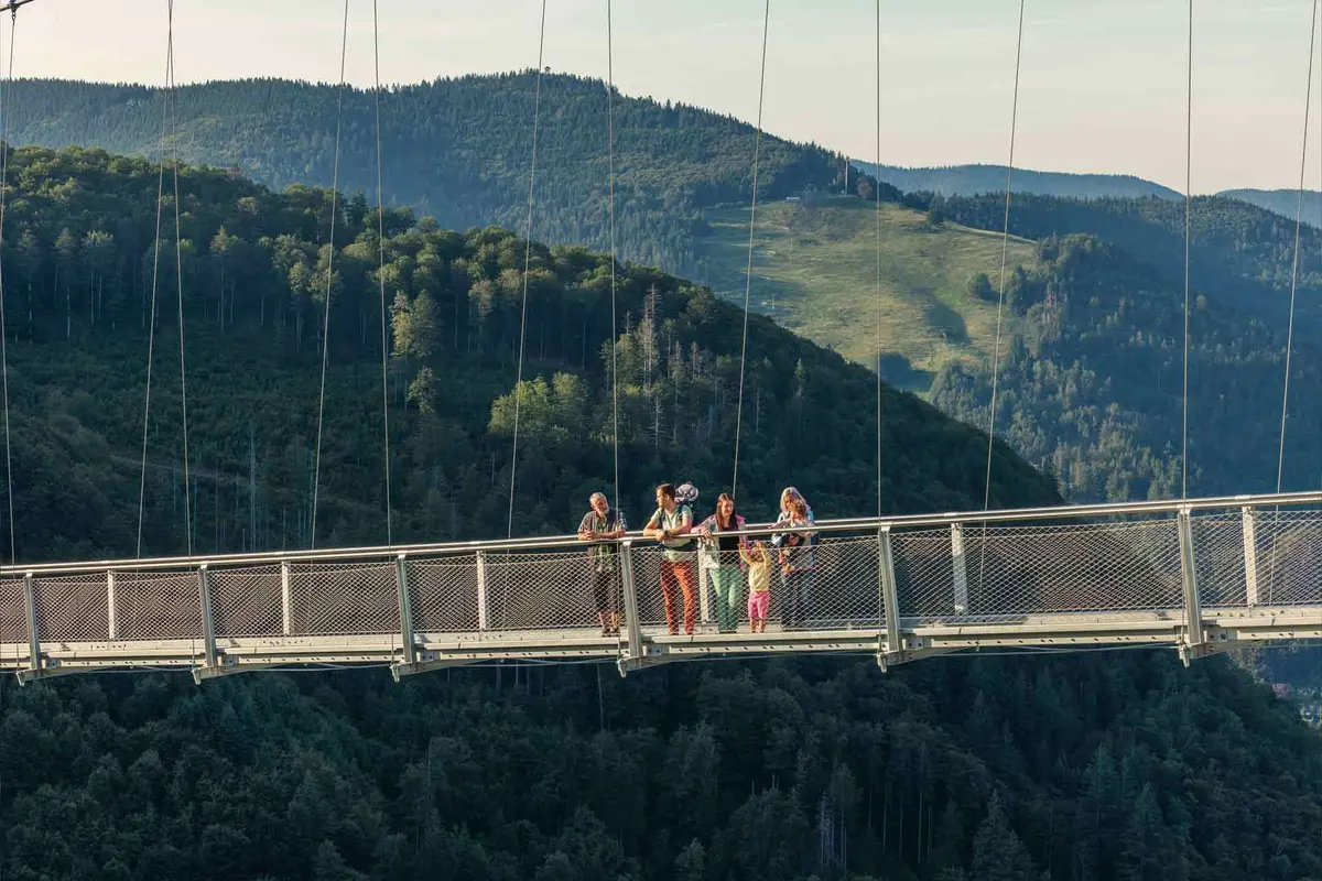 Traversez le pont à votre rythme : au milieu, la vue est à couper le souffle sur les montagnes boisées, les cascades et les sommets de la Forêt-Noire. Une expérience inoubliable à vivre seul, en couple, entre amis ou en famille.