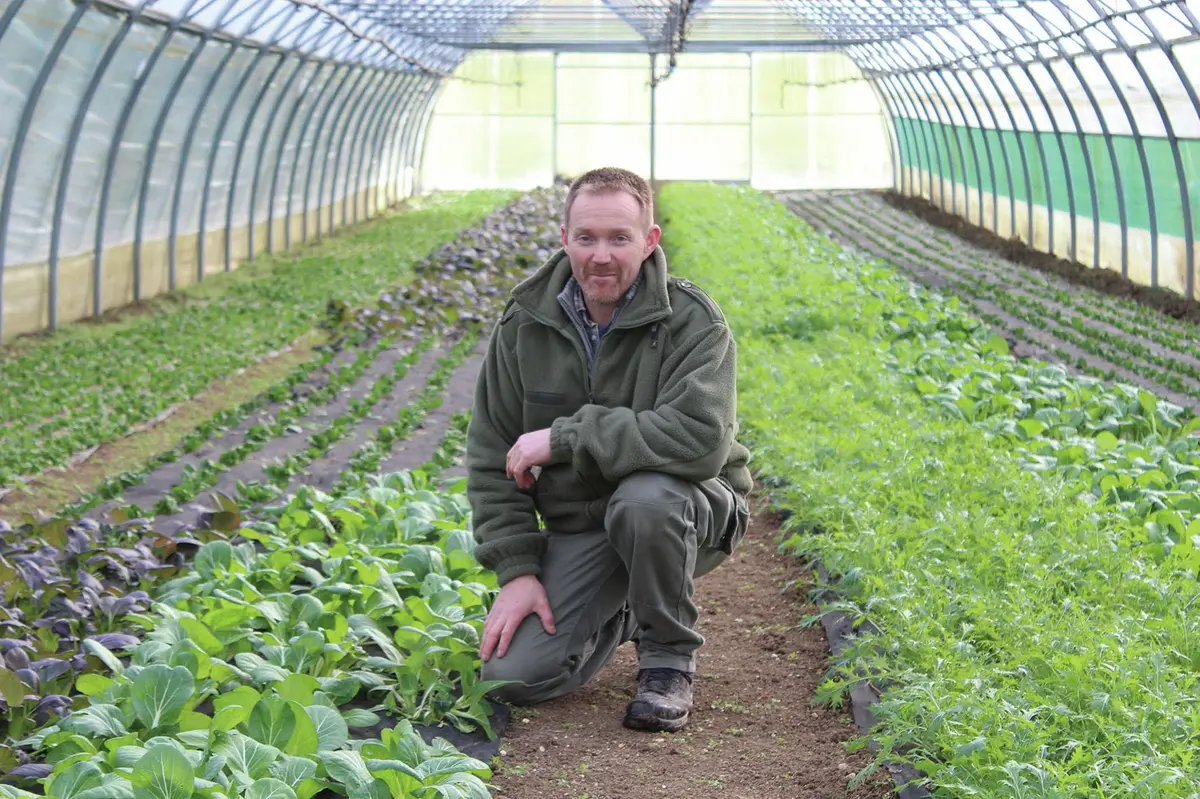 Raphaël Gasser dans une de ses serres à Wolschwiller