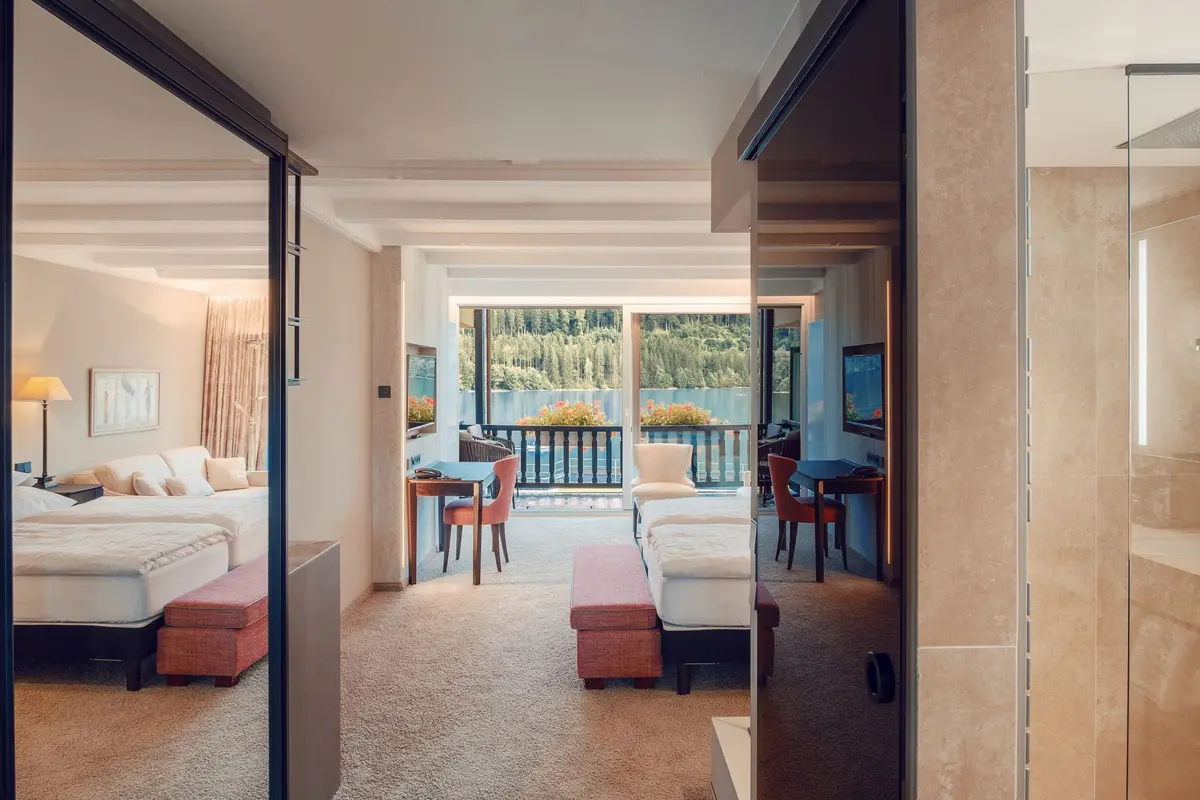 Les chambres et suites du Treschers Schwarzwaldhotel offrent un confort haut de gamme sans ostentation : mobilier sobre, teintes apaisantes, literie moelleuse et, pour certaines, un balcon donnant directement sur le lac. Au lever du jour, la brume se dépose sur l’eau gelée ; le soir, les montagnes s’embrasent sous la lumière dorée du coucher du soleil. Un véritable tableau d’hiver grandeur nature.