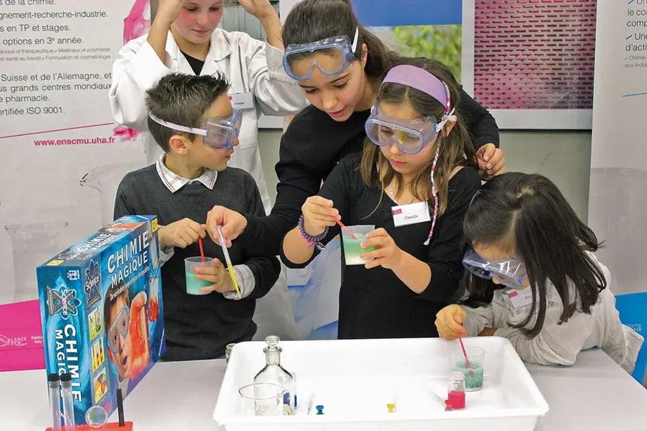 Afin de compléter sa collection sur les sciences, la marque de jeu Ravensbuger, dont le siège français est à Pfastatt, a lancé un nouveau kit de chimie. Et pour cela, elle a fait appel à l’Ecole nationale supérieure de chimie de Mulhouse (ENSCMu), pour deux bonnes raisons : « On avait vraiment besoin d’une expertise dans le domaine de la chimie et on était géographiquement très proche », souligne Cécile Charton, développeur jeux créatifs et scientifiques chez Ravensburger. « Nous, on a la connaissance du jeu et des enfants mais pas de la discipline : on n’est pas ingénieur, donc c’est important de s’entourer des bonnes personnes. Cela permet de trouver des idées et des concepts de jeux auxquels on n’aurait pas pensé, développe Sandy Smolinski, chef de produit chez Ravensburger. Ce genre de partenariat est intéressant, surtout pour les jeux à forte valeur éducative, car c’est une caution auprès des parents. »