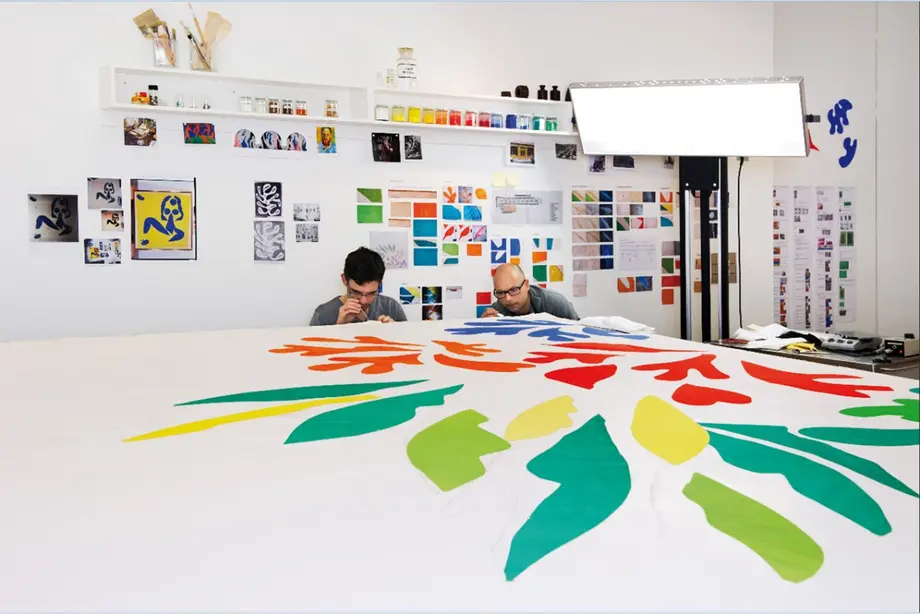 Pour trouver leurs réponses, les deux restaurateurs ont interrogé conservateurs, historiens, scientifiques, techniciens du monde entier et ont examiné au total 60 autres papiers découpés de Matisse pour établir les faits. Ils ont observé Acanthes à la loupe, ou plutôt au microscope, avec une lumière incidente, rasante, transmise et soumise aux rayons ultraviolets, dans un atelier spécialement créé pour l’occasion, permettant d’étendre cette toile de 11m2.