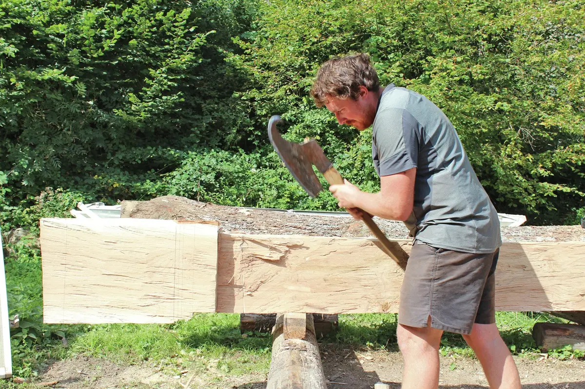 C'est avec son CAP charpentier effectué chez les compagnons du devoir qu'Antoine se penche sur les techniques anciennes de taille du bois qui étaient utilisées jusqu'au 19ème siècle. La hache comme une évidence, mais aucune formation n'existait, Antoine a alors appris sur le tas. Autodidacte, il a débuté par des petits chantiers, toujours seul, et s'est fait la main avec le temps.