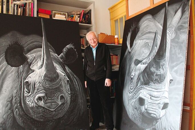 Aujourd’hui, ses préoccupations sont d’ordre écologiques, lui, le citadin qui a quitté Mulhouse dans les années 80 pour s’installer à la campagne à Soppe-le-Haut, au milieu des poules, des lapins et des oies. Parce que « la destruction systématique de la planète » l’insurge, il a commencé à peindre des portraits d’animaux menacés d’extinction à la manière des portraits bourgeois du XIXe siècle : « Dans ces portraits, on a l’impression que ces personnes veulent nous faire passer un message à travers leur regard. Je voulais donner cette même impression avec ces animaux qui ont une réminiscence préhistorique, comme l’éléphant ou le rhinocéros », souligne l’artiste. Il se fait encore plus engagé, à travers sa série sur les écocides, peignant un canard prisonnier dans une pelleteuse ou une biche évacuée par un hélicoptère… L’animal victime de la machine, et donc de l’homme : « Tant que l’homme détruit l’animal ou provoque sa souffrance, l’homme ne peut pas être sauvé, parce qu’il traitera ses semblables de la même façon ». Dans ses dernières toiles, le peintre adoucit son propos : « J’aimerais être un peu plus poétique, taper moins dur. Je ne veux pas être simplement militant, cela me plaît mieux d’être un artiste ». Il y a certes toujours des bulldozers pour détruire la nature, mais dans des paysages inspirés du peintre américain du XIXe siècle, Frederic Edwin Church : « Quand je regarde ces toiles, j’arrive à respirer. Or quand je me balade, je n’arrive plus à respirer, tout est tellement étouffant, surtout en Alsace où tout est morcelé. Tout ce qui défigure le paysage me met en colère. Je n’ai pas de solutions mais je suis persuadé que l’homme doit penser autrement. »