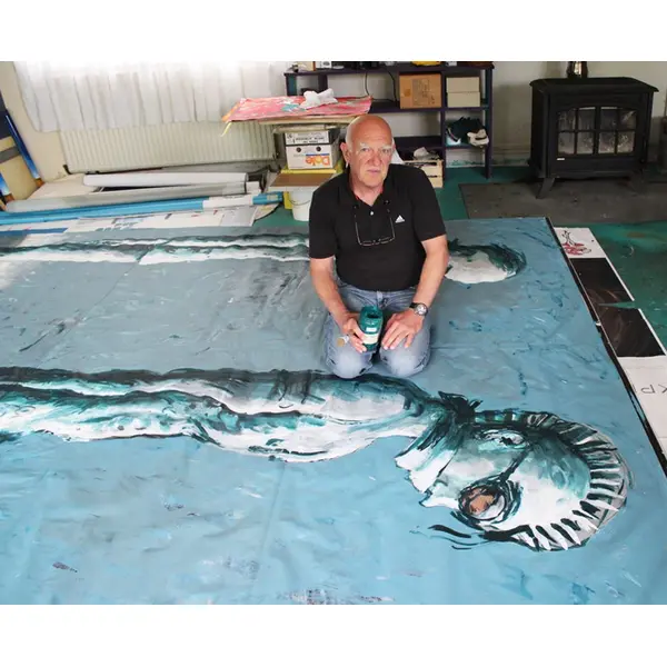 Il réalisera trois performances qui risquent de marquer les esprits puisqu’il détruira des œuvres, de grandes bâches peintes, conçues spécialement pour l’expo : « Je détruis des œuvres qui sont abouties et qui me plaisent, pas des rebus. Ce n’est pas la destruction pour la destruction mais pour la transformation, pour mettre en évidence qu’à chaque strate de travail, on détruit quelque chose. L’humain a une position prétentieuse par rapport au monde : il est environné par une nature merveilleuse mais la détruit quand même. C’est la symbolique de cette destruction que je fais, d’où la nécessité que le tableau soit beau », précise-t-il.