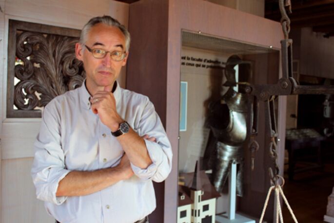 « J’ai toujours eu ce don d’être fasciné et émerveillé par les choses », confie Joël Delaine, conservateur des musées municipaux de Mulhouse depuis 10 ans et au service du patrimoine depuis plus de 30 ans. Déjà enfant, il avait une soif de connaissances intarissable : il dévorait Science et Vie, ne partait pas en vacances sans un dictionnaire, réalisait très méticuleusement des cartes du monde ancien. L’archéologie est sa première vocation et il se souvient de visites sur le site de Glanum à St-Rémy-de-Provence avec son grand-père, un chaudronnier premier prix de latin mais qui n’a pu continuer ses études fautes de moyens. « Mon grand-père n’avait plus fait de latin depuis ses 10 ans mais 60 après, il déchiffrait encore avec fierté les inscriptions et ça reste un souvenir très marquant pour moi ! »