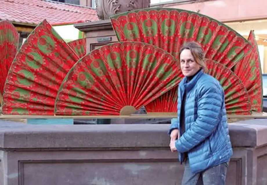 A quelques jours de l’ouverture du marché de Noël de Mulhouse, Marie-Jo Gebel ne sait plus où donner de la tête. Celle qui crée l’étoffe de Noël de Mulhouse (qu'on peut acheter à la boutique) presque sans interruption depuis 18 ans descend tout juste de sa nacelle, où elle vient de passer deux jours à habiller l’hôtel de ville. Il a fier allure avec ce tissu rouge et vert, baptisé Alizarine, inspiré par deux motifs conservés au Musée de l’impression sur étoffes à Mulhouse : « Ce n’est pas évident de faire un décor en extérieur avec du tissu, mais c’est une matière chaleureuse, encore accentuée par les drapées, les rondeurs, les plissés soleil, les couleurs traditionnelles. Tout est calculé au cm près. Il faut que rien ne jure. J’aime ce genre de défi : trouver la bonne harmonie dans les volumes, les teintes et les coupes, c’est important pour séduire le plus de monde possible. Le plus beau retour, c’est quand les gens s’arrêtent pour regarder ce tissu », explique-t-elle. A Altkirch, ce n’est pas sur ses étoffes que le regard du visiteur se pose, mais sur les personnages de la Forêt Enchantée de Noël, à Altkirch qu’elle a façonnés : « Ce sont deux chantiers de Noël très différents, mais du moment que l’on peut apporter de la féerie et du rêve aux gens, je suis partante. Noël est pour moi une fête de partage, de douceur, de bonté. »