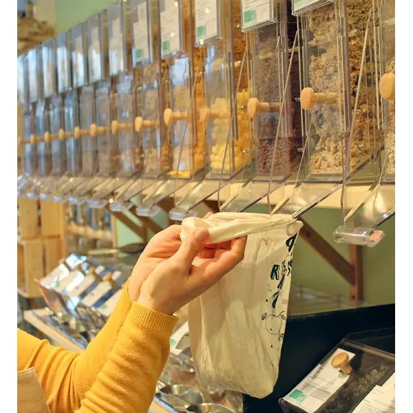 Le passage hebdomadaire au Cora ne se fait plus dans la spontanéité ou l'innocence. Tout est calibré pour que vos provisions nuisent le moins possible à la planète : tote bags réutilisables, pas de produits transformés, vrac en libre service, lecture à voix haute des valeurs nutritionnelles des aliments dans le rayon, fruits et légumes pris sans sachet plastique - le code-barre, vous le collez directement dessus !