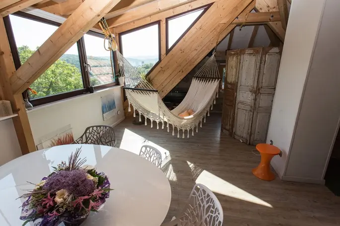 Venez vous ressourcer dans ce petit coin de paradis, niché sur les hauteurs du petit village d’Osenbach, au gîte le Skyloft. Une vue incroyable sur la vallée en contrebas, un écrin de douceur logé en plein cœur de la nature...Vous aller adorer l'expérience ! Le petit plus : pour les beaux jours, le domaine propose un grand jardin, une terrasse et une piscine extérieur ! Que demander de plus ?