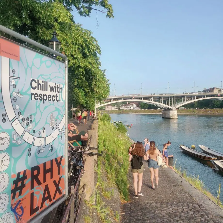 Vous ne pourrez pas passer à côté de ces nombreux panneaux aux abords des rives du Rhin : ces grandes cartes vous indiquent où sont situées les zones de baignade à respecter et surtout que la descente ne doit pas dépasser le Dreirosenbrücke. Pendant vos 3 km de descente dans les eaux (fraîches) du Rhin, appréciez le panorama tout autour de vous : les impressionnantes tours Roche, les cabanes de change et de pêcheurs colorées, les immeubles typiques et la magnifique Cathédrale de Bâle. De quoi voir la ville sous un tout autre angle !