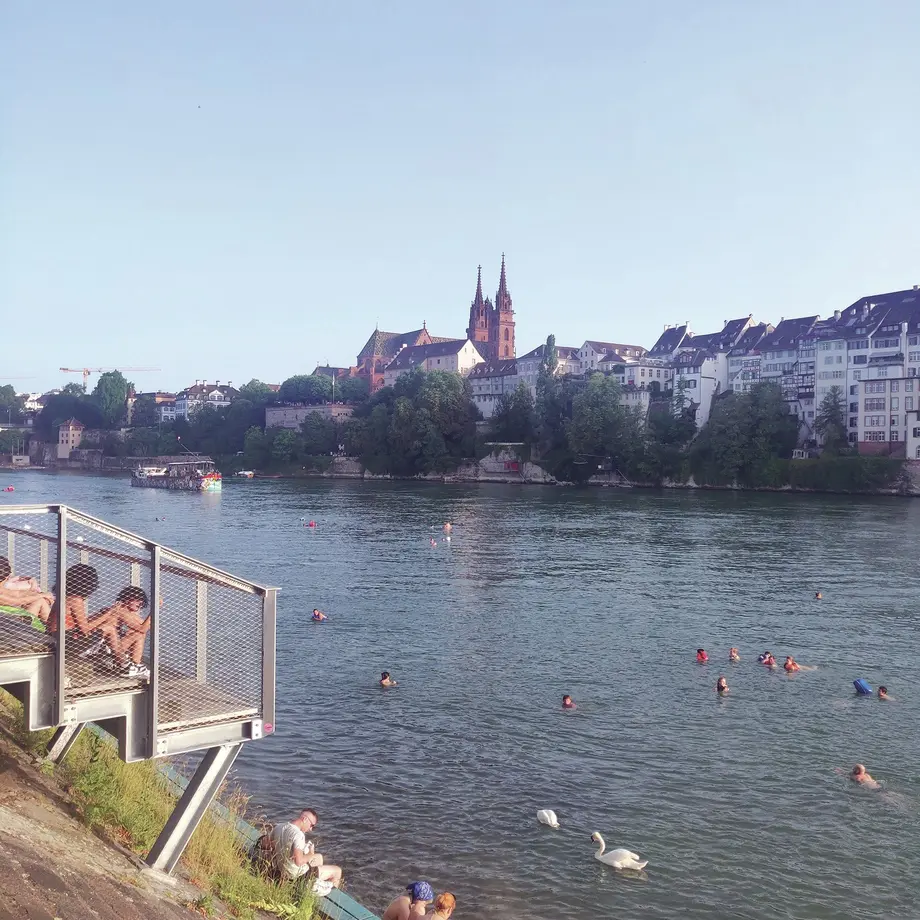 Immergé dans les eaux pures du Rhin, vous pourrez sentir la puissance du courant qui vous porte à une vitesse constante au travers de la ville suisse. Anticipez votre sortie et préparez-vous à nager vers la rive, en empruntant des échelles ou escaliers spécialement conçus pour l'activité. Je vous conseille de sortir après le Johanniterbrücke, où deux sorties se présenteront sur votre droite. Si vous ne parvenez pas à l'emprunter, vous pouvez escalader les berges et vous hisser sur la rive pour vous laisser sécher tranquillement au soleil.