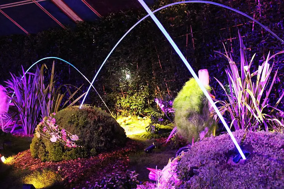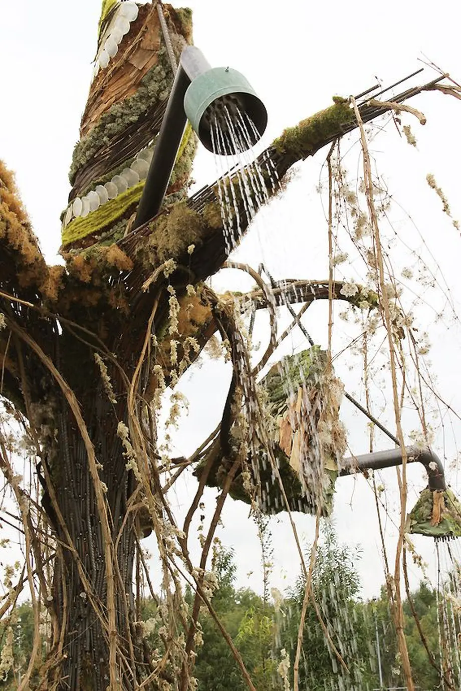 Dès l'entrée de Folie'Flore, vous vous retrouvez en face de l'arbre à arrosoirs géants, "l'Arbrevoir". Ses branches laissent s'échapper des cascades d'eau. La nuit, tout illuminé, c'est encore plus féerique.