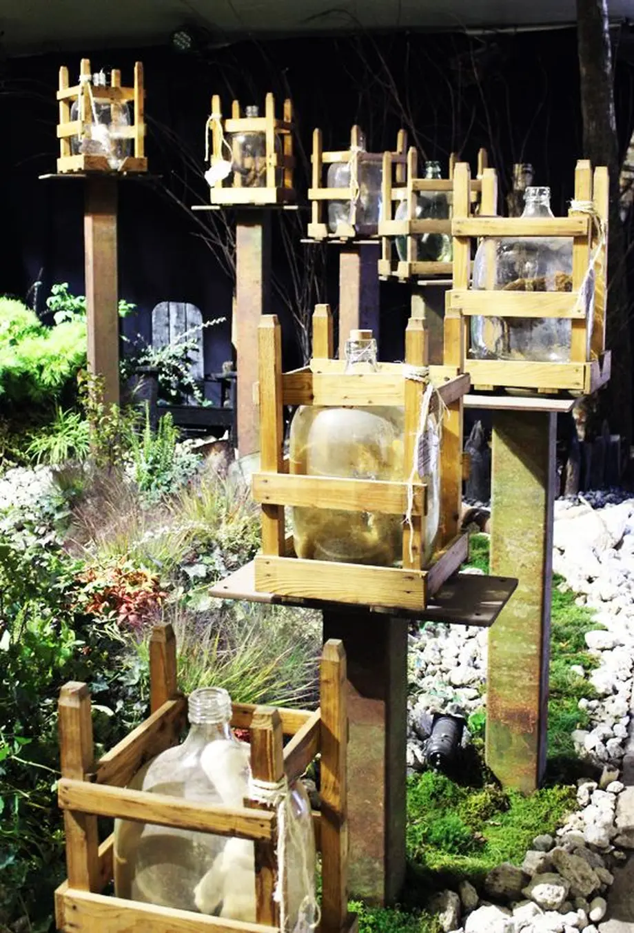 Gros plan de l'un des six jardins miniatures réalisé par les Entreprises du Paysage. A l'intérieur de ces cubes de verre d'un mètre sur un mètre, de véritables scènes ont été recréées avec beaucoup de délicatesse. Très étonnant !