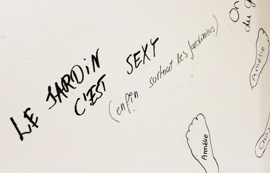 Des panneaux blancs ont été installés dans certaines allées afin que les jardiniers et paysagistes ayant oeuvré avec talent sur cette édition 2016 de Folie'Flore puissent laisser de petits messages aux visiteurs. Entre quelques mots de poésie, parfois, des appels du pied...