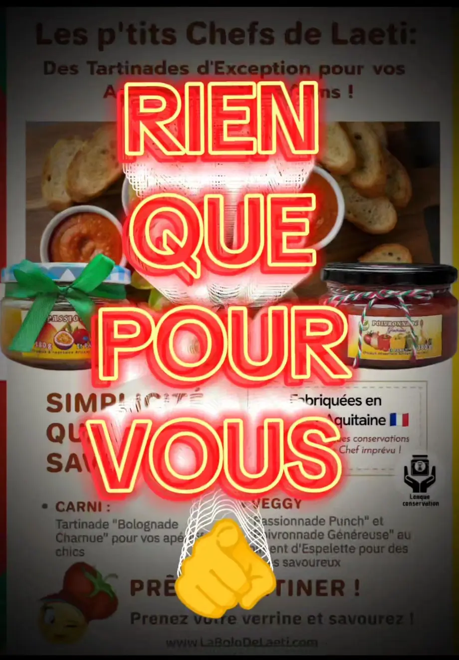 Marre des éternelles cacahuètes ? Venez révolutionner vos tables de fêtes avec Laëtitia Bartoli ! La créatrice de "La Bolo de Laeti" débarque en magasin pour vous présenter sa toute nouvelle collection de tartinades artisanales : Les P'tits Chefs de Laeti.