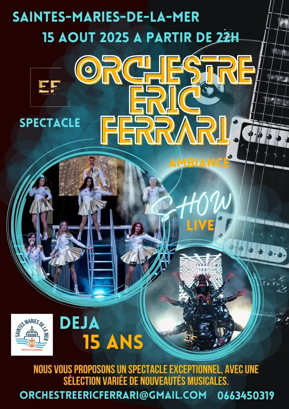 - 22 h : Concert de l’Orchestre Ferrari, sur le parvis de l’Hôtel de Ville.