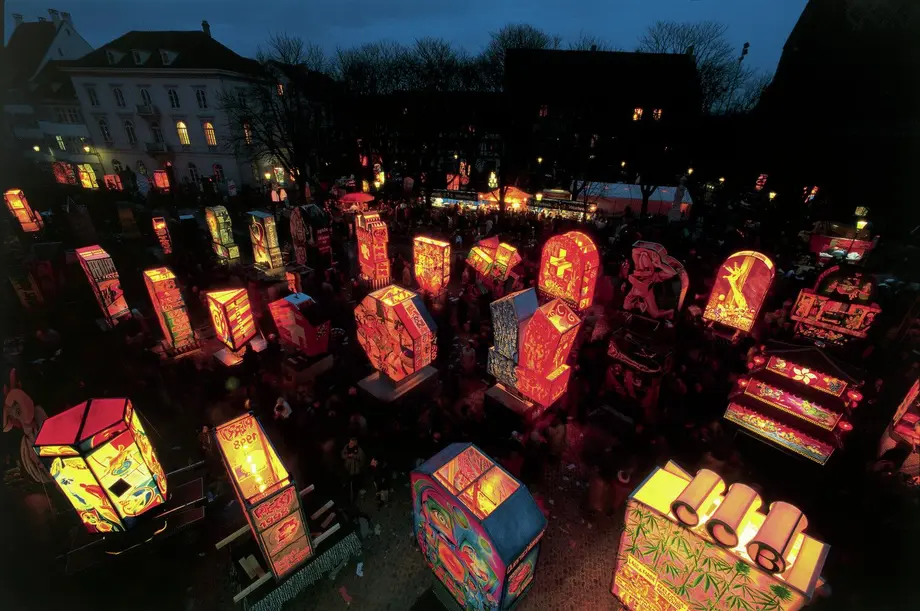 Pendant les trois jours de carnaval, la Münsterplatz accueille une exposition extraordinaire de lanternes sophistiquées. Ces œuvres d'art, peintes par les artistes des cliques ou des amateurs passionnés, s'illuminent magnifiquement à la tombée de la nuit. Chaque lanterne, unique par son style et sa forme, reflète l'évolution artistique du carnaval au fil des décennies.