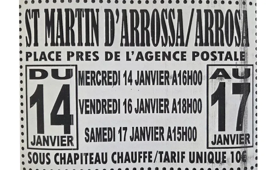 Cirque MorelloLe 17/01/2026 Saint-Martin-d'ArrossaPetits et grands, venez passer un agréable moment avec le Cirque Morello, cirque familial et de tradition, sous un grand chapiteau chauffé.