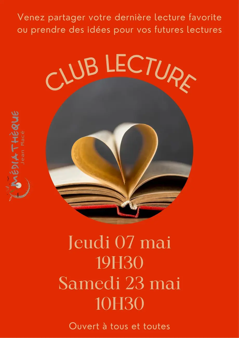 Club de lecture — Venez partager votre dernière lecture ou vos lectures favorites, et puiser des idées pour vos futures lectures. Gratuit, sur inscription.