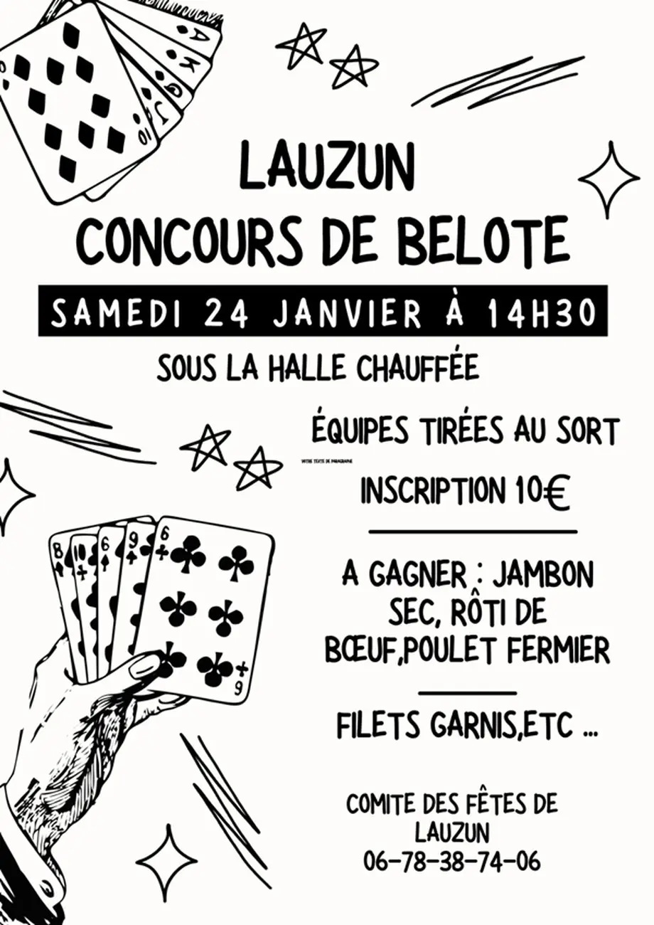 Venez nombreux participer au concours de belote organisé par le Comité des fêtes.