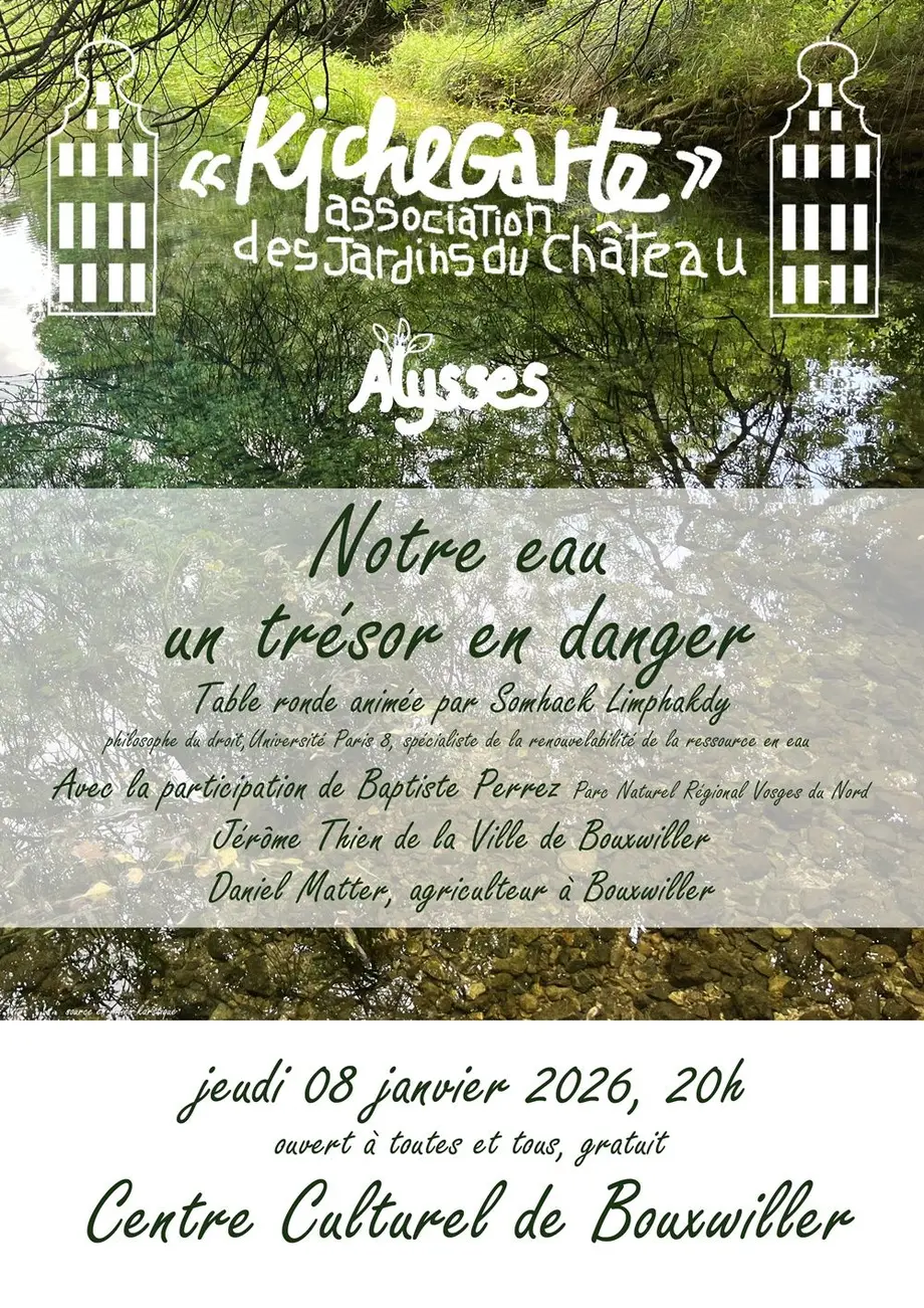 Table ronde sur "Notre eau, un trésor en danger", gratuite et ouverte à tous et toutes.