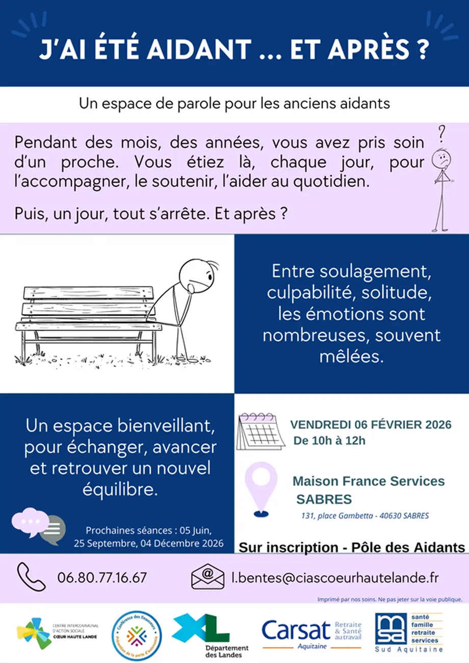 L’expérience d’aidant est intense. Pour vous permettre de mettre des mots sur ce que vous avez vécu, de partager vos émotions et de rencontrer d’autres personnes qui comprennent votre parcours, le Pôle des Aidants vous propose un espace de parole : « J’ai été aidant… et après ? »