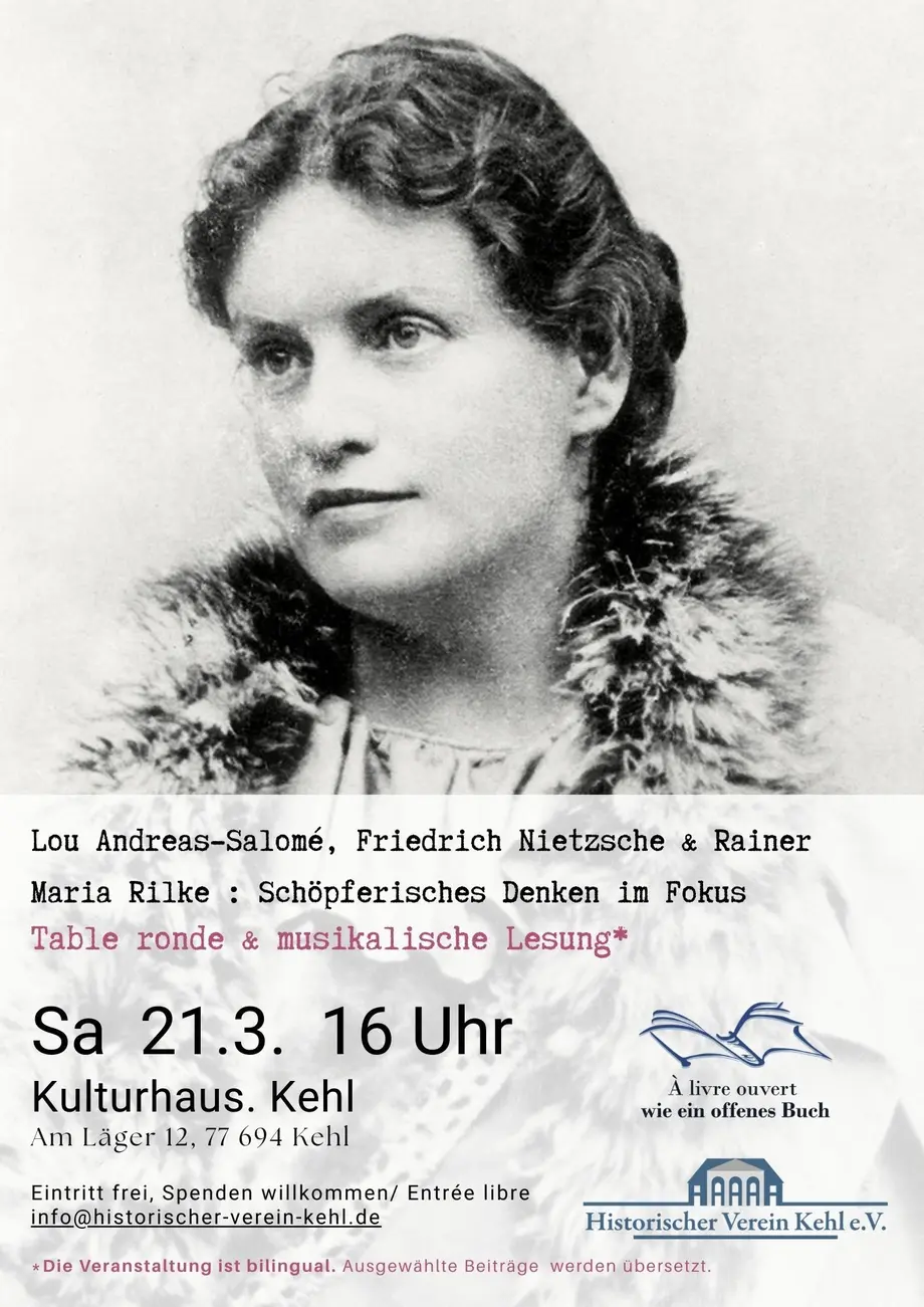 Lou Andreas-Salomé, Friedrich Nietzsche et Rainer Maria Rilke : la création en question - Table ronde avec lectures d’extraits (1h), suivie d’une lecture scénique et musicale (1h)