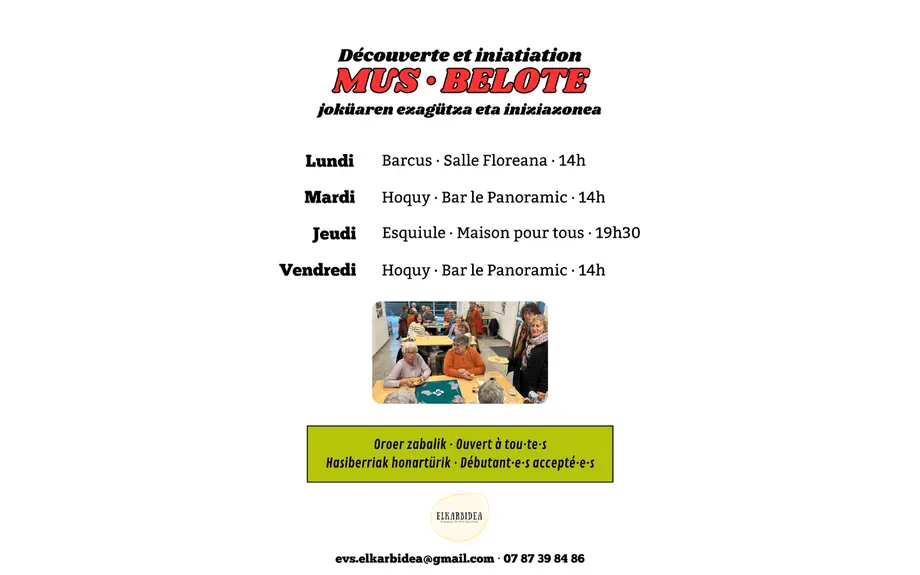 Vous souhaitez découvrir et apprendre à jouer au mus, un jeu de cartes emblématique ? Ou bien souhaitez-vous découvrir la belote ? Réservez votre après-midi.