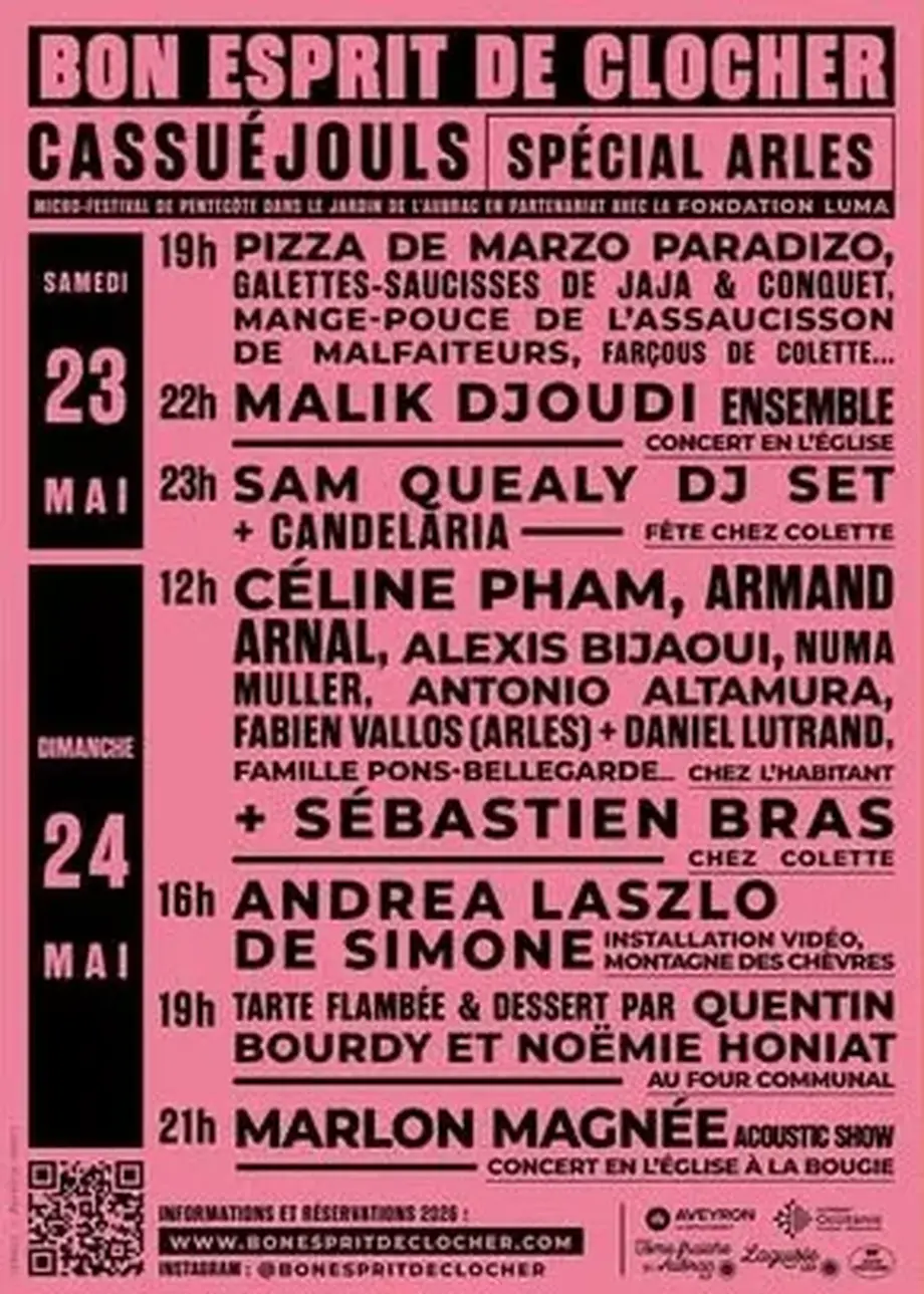 - 19 h 00 : À emporter ou à déguster dans le village : flammekueche à l’aveyronnaise au Laguiole AOP et à la crème double de l’Aubrac, cuite dans le four à bois communal par le chef Quentin Bourdy (Villefranche-de-Rouergue), dessert par Noëmie Honiat, et vins d’Aveyron de Sam Fortuny (Domaine des Fougères).